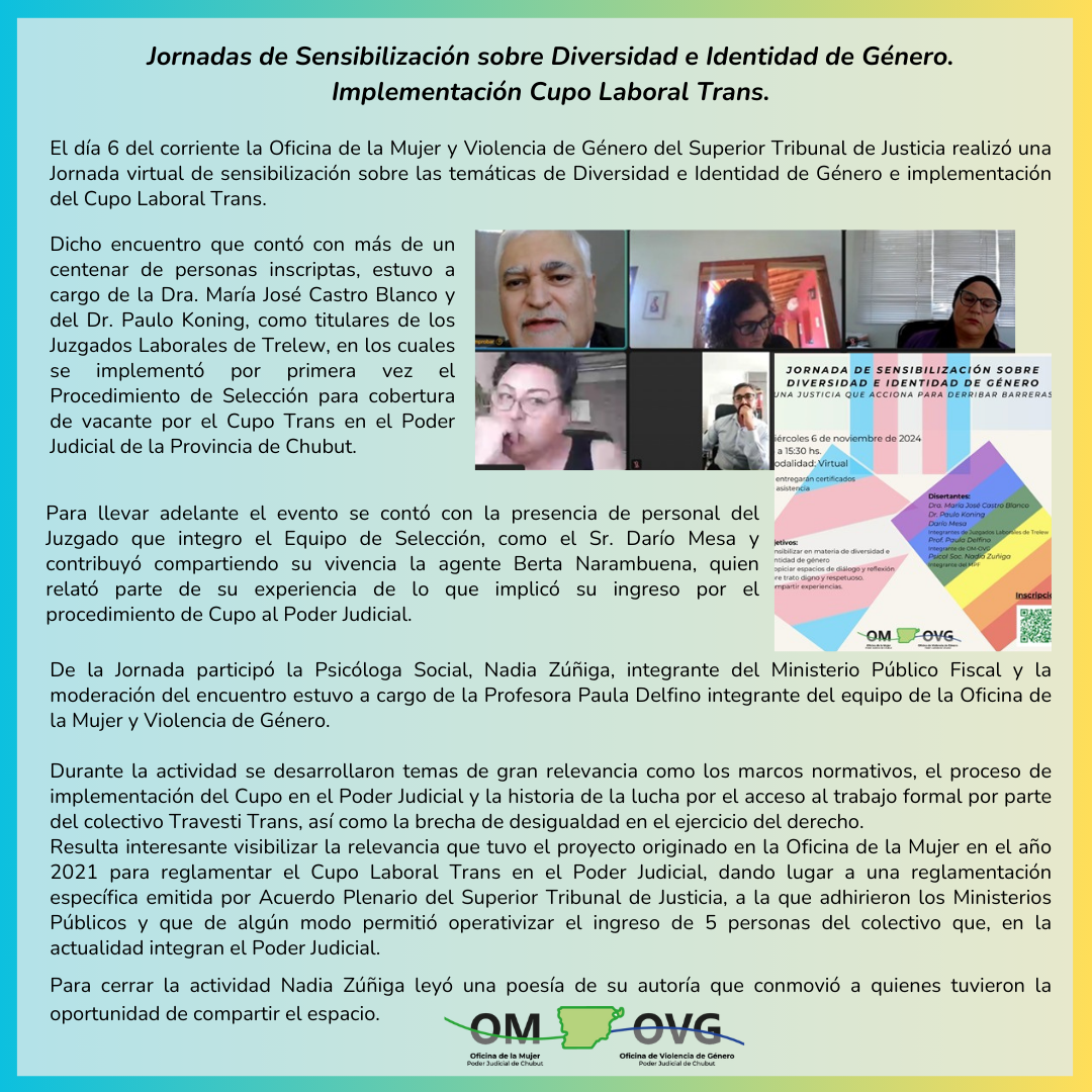 {fa-newspaper-o color=rgb(167,167,167)} Jornadas de Sensibilización sobre Diversidad e Identidad de Género. Implementación Cupo Laboral Trans