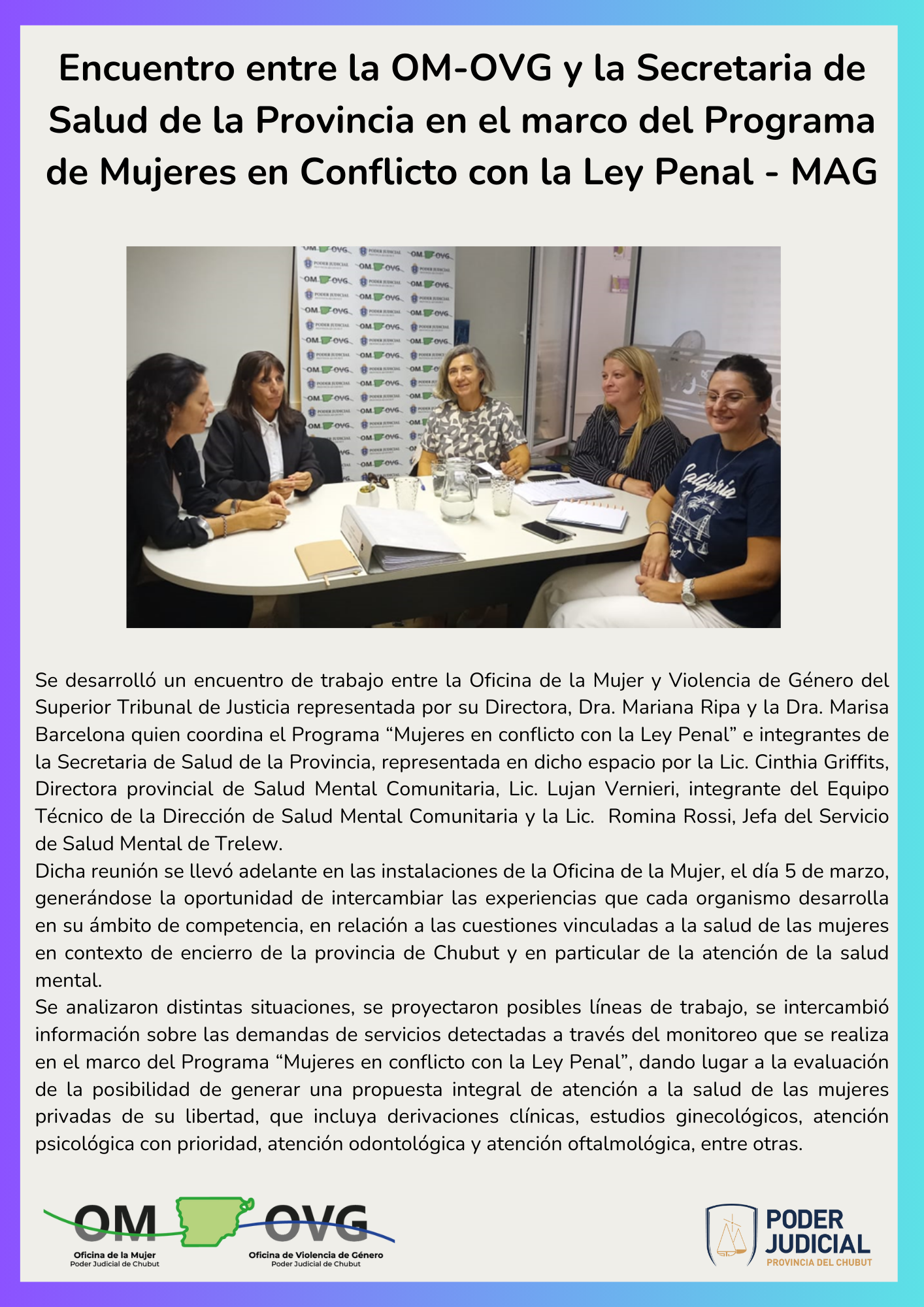 {fa-newspaper-o color=rgb(167,167,167)} Encuentro entre la OM-OVG y la Secretaria de Salud de la Provincia en el marco del Programa de Mujeres en Conflicto con la Ley Penal - MAG