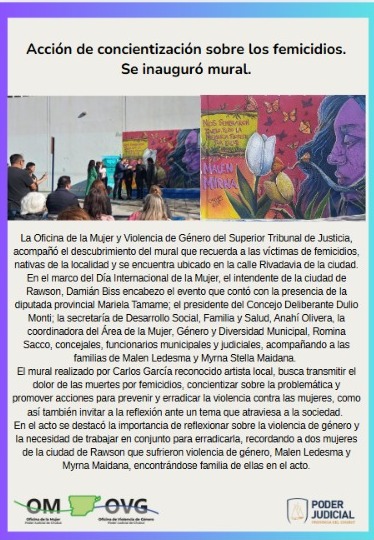 {fa-newspaper-o color=rgb(167,167,167)} Chubut: un trabajo realizado por la Oficina de la Mujer y Violencia de Género refleja 31 femicidios en la Provincia en los últimos 9 años y medio