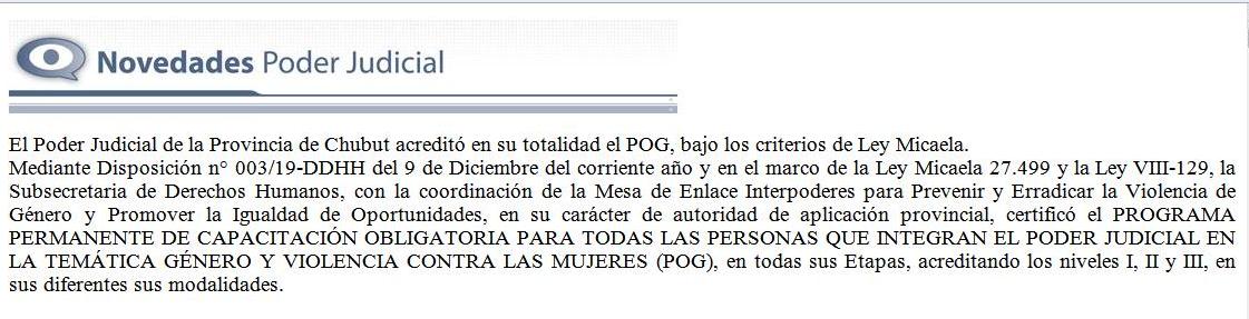 {fa-newspaper-o color=rgb(167,167,167)} Informe sobre la implementación de la Ley Micaela en el Poder Judicial de Chubut